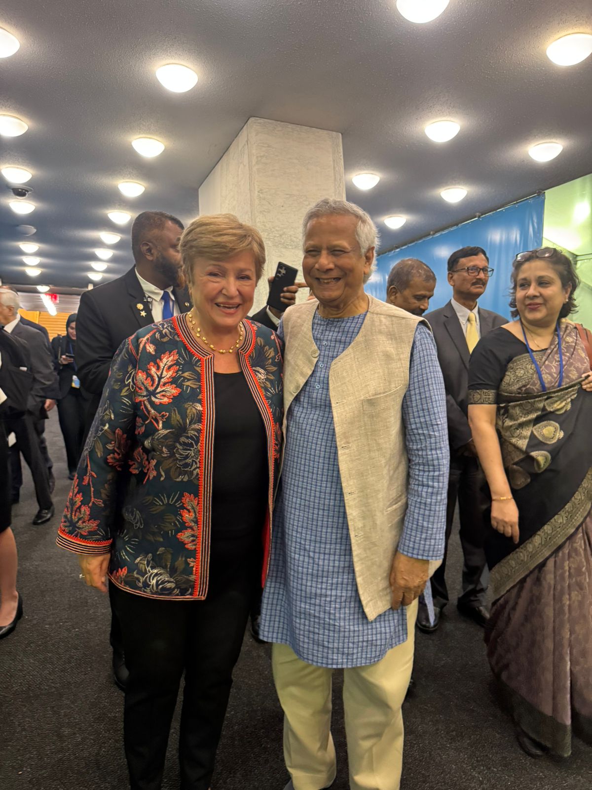 IMF Managing Director Kristalina Georgieva meets Chief Adviser Professor Muhammad Yunus at the UN headquarters in New York on Monday. - 23 September 2025, 7:01 AM